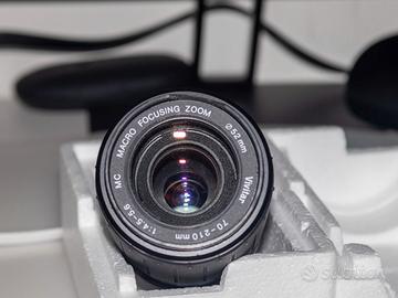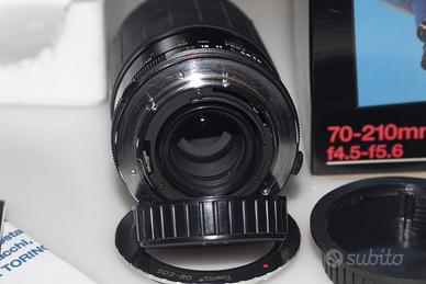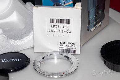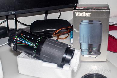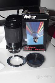 Questo è un obiettivo fotografico vintage Vivitar 70-210mm f/4.5-5.6 Macro con innesto per fotocamere OM zuiko. Tipo: Obiettivo zoom teleobiettivo a fuoco manuale. Lunghezza focale: 70-210mm. Apertura: f/4.5 - f/5.6. Caratteristiche: Include una modalità Macro con rapporto di ingrandimento 1:4x. Compatibilità: Progettato per sistemi Olympus OM Zuiko. Con adattatore per Canon EF EF-S. Messa a fuoco manuale fino a infinito completo di scatola originale, privo di muffe o polvere interna al corpo dell'obbiettivo (piccola sbrecciatura fontale ininfluente per la resa fotografica.