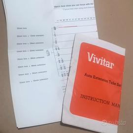 Set di tubi di prolunga automatici Vivitar AT-3. Questi tubi sono progettati per la fotografia macro, permettendo all'obiettivo di mettere a fuoco a distanze più ravvicinate, aumentando così l'ingrandimento del soggetto.