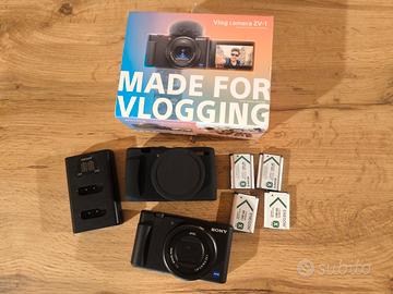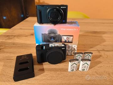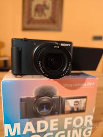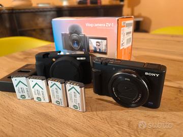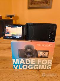 Vendo Sony ZV1 in perfette condizioni, usata molto poco, con scatola originale, custodia in gomma protettiva, caricatore batterie supplementare e 4 batterie( 2 originali Sony + 2 compatibili Enegon). La camera è perfetta per vloggare, fare dirette Twitch, reel etc. schermo e obbiettivo senza segni di usura. Vendo per inutilizzo. NON TRATTABILE