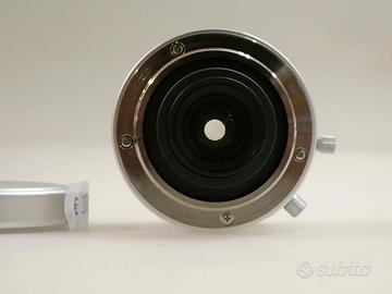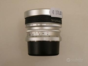 Voigtlander M Ultra Wide Heliar 12mm f/5.6 - USATO Innesto: Leica M Lunghezza focale: 12mm Apertura massima: f/5.6 Formato: Full Frame Angolo di campo: circa 121° Messa a fuoco: Manuale Schema ottico: 11 elementi in 9 gruppi Diaframma: 10 lamelle Distanza minima di messa a fuoco: circa 0,5 m Costruzione: Interamente in metallo Caratteristica: Ultra-wide compatto con distorsione contenuta Prodotto usato con garanzia di 1 anno, scatole ed imballi presenti. ------------------------------------ Per info contattateci in negozio, priorità alle chiamate.