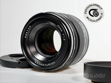 Voigtlander Nokton 40mm f/1.2 attacco Canon RF Pari al nuovo! Obiettivo in condizioni generali pari al nuovo, scocca pari al nuovo, lenti pari al nuovo, con paraluce e tappi originali, scatola. Obiettivo Manual Focus con contatti dedicati per gestire il tutto su tutti i corpi mirrorles Canon . Ha un'ampia apertura di F1.2, è completamente manuale ed è stato adattato e ottimizzato esclusivamente per i sensori di immagine del sistema Canon R. La costruzione dell'obiettivo è composta da otto elementi in sei gruppi. Due elementi ottici presentano un design asferico su entrambi i lati, che contribuisce a una resa d'immagine eccezionale, con una nitidezza impressionante anche nelle aree periferiche, persino a diaframma aperto. Inoltre, è possibile raggiungere una distanza minima di messa a fuoco di soli 30 cm, aprendo interessanti prospettive creative nella composizione dell'immagine. L'obiettivo si distingue anche per il suo bokeh estremamente piacevole (10 lamelle del diaframma). Garanzia 12 mesi da negozio Accessori in dotazione: - tappi originali, - paraluce originale, - scatola. Spedizione in tutta Italia al costo aggiuntivo di : Euro 10,00 con pagamento anticipato Bonifico bancario. Per informazioni chiamare numero di telefono che trova su www.fotocolombo.it - mail: info@fotocolombo.it Per richieste o qualsiasi info: -ESCLUSO domenica festività e ponti (10-12.00 pom. 15,00-18,00)