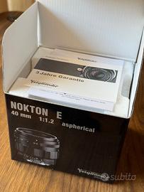 Vendo Voigtlander Nokton 40mm f/1.2 Aspherical, attacco Sony E-Mount. Obiettivo manuale con apertura f/1.2, bokeh incredibile e qualità costruttiva tutta vetro e metallo. Usato pochissimo, circa 100 scatti in tutto. Sempre utilizzato con filtro UV montato: lente frontale perfetta, zero segni o graffi. Condizioni pari al nuovo. Vendo per passaggio a Fujifilm. Completo di scatola originale, paraluce e tappi. Prezzo: 500€ — trattabili per chi viene a ritirare di persona. Disponibile anche per spedizione assicurata a mio carico. No perditempo, grazie.