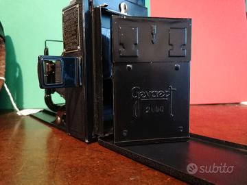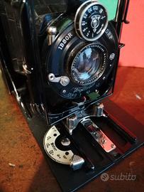 Utilizzabile per lastra o per pellicola piana con un caricatore adatto. Mirino Alba da o sportivo. Regolazione fine su settore circolare di avorio. Tempi Te B e fino ad 1/125. Obiettivo Skopar 1/4,5 focale 105 mm. Decentramento anteriore per lavori di architettura. Custodia cuoio.