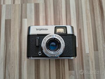 Vendo Voigtländer Vito C vintage con custodia originale in condizioni molto buone e ben conservata. Montata con obiettivo Lanthar 50mm f/2.8 e otturatore Prontor, è una classica analogica meccanica anni '60 molto affascinante sia per collezione sia per utilizzo. Verifiche effettuate: avanzamento pellicola funzionante scatto funzionante diaframma reattivo e regolabile mirino pulito interno completo manca solo il rullino. Non essendo stata testata con pellicola sviluppata, la vendo come meccanicamente verificata ma non testata sul risultato fotografico finale. Prezzo trattabile