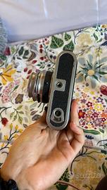 Fotocamera a pellicola anni ’60, compatta ed elegante, con esposimetro al selenio integrato e ottica Voigtländer Color-Skopar 50mm f/2.8. Buone condizioni estetiche e funzionali, ideale per collezionisti o per chi vuole sperimentare la fotografia analogica con un pezzo di storia.