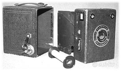 La Warwick No.2 box made in Birmingham, UK. La macchina e' originale ed il suo involucro e' fatto in cartone ed e' munita di due piccole lenti. Ha un piccolo spioncino rosso sul retro per controllare l'avanzamento del film. Era prodotta tra il 1930 e la ditta che la produceva ha chiuso nel 1955. Prezzo trattabile.