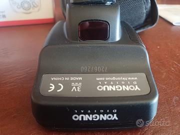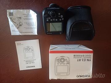 Yongnuo Speedlite Transmitter YN-E3-RT II TTL Flash Trigger Canon solo provato. c'e ancora la protezione schermo originale Brand: Yongnuo Manufacturer: ShenZehn YongNuo Photographic Equipment Co. Ltd Distributore ufficiale in Italia: NO Nome commerciale: YN-E3-RT Tipo Dispositivo: Controller flash automatico (E-TTL / E-TTL II) a radiofrequenza Data di lancio sul mercato: Dicembre 2013 Modelli Gemelli (re-branding): NO Aggiornamento del seguente modello: (NUOVO MODELLO) Prodotto sostituito da: Yongnuo YN-E3-RT II Specifiche Display LCD: SI Servo illuminatore AF: SI Sistemi Radio wireless incorporati nel trigger: ST-E3-RT/600EX-RT (Canon) Distanza operativa massima: 100 mt Canali Wireless Disponibili: 15 Gruppi Disponibili: 5 (A/B/C/D/E) Modalità disponibili FLASH: E-TTL/E-TTL II, Manuale, Multi (Strobo), Gr (Group) Possibilità di scatto remoto: SI (con fotocamere Canon prodotte prima del 2012 necessita di cavo di scatto tipo LS-MINIB/C3 o LS-MINIB/C1, a seconda del modello di fotocamera) Supporto HSS (High Speed Sync): SI Supporto TTL: SI Altre modalità supportate: Sincro sulla prima tendina, Sincro sulla seconda tendina (solo in modalità Manuale), HSS, Compensazione esposizione, FE Lock, Bracketing Esposizione, Modeling Flash Dimensioni e peso Dimensioni: 67,7 (L) x 66,7 (A) x 81,3 (P) mm Peso: 110 g (batterie escluse) Alimentazione Batterie: 2 x AA (Alcaline oppure NiMH ricaricabili) Tempo di FUNZIONAMENTO (con batterie alacaline completamente cariche): circa 10 ore Porte e connessioni Porta USB per aggiornamento firmware Piedino multi-polare E-TTL/E-TTL II Terminale per cavo di scatto remoto Compatibilità YN-E3-RT è compatibile con tutte le fotocamere Reflex digitali Canon dotate di slitta ISO e modalità E-TTL / E-TTL II. E' inoltre compatibile con le seguenti fotocamere a pellicola: EOS 1V, EOS 3, EOS 30, EOS 30V, EOS 33, EOS 33V, EOS 300, EOS 300V, EO