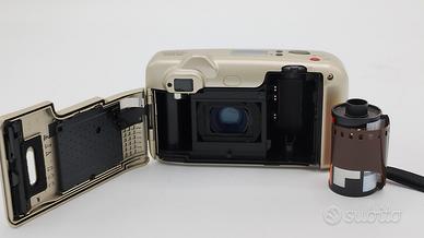 Super compatta tascabile piccolissoma punta e scatta a pellicola 35mm. Obbiettivo Zoom 38-105mm Macchina FUNZIONANTE!!! testata con rullino. Condizioni pari al nuovo vedi foto reali della macchina in vendita. Con astuccio morbido originale.