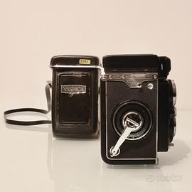 In vendita la punta di diamante della gamma Yashica medio formato. Modello raro per collezionisti, prodotto per pochi anni, che presenta le medesime lenti ed otturatore della successiva e più famosa Mat124 e Mat 124g ma con una bellezza e qualità costruttiva superiore. Meccanicamente è stata appena revisionata da specialista ligure in questo tipo di fotocamere. Risulta pertanto in tolleranza in tutti i tempi di scatto, la meccanica è stata smontata, pulita in vasca ad ultrasuoni e lubrificata con grassi specifici, lo chassis è perfetto nelle quote ed il piano focale è stato regolato. L'autoscatto funziona e le lenti sono inoltre perfette senza graffi, scollature, polvere e muffe. Ho scattato con lei numerosi rullini ed ho sempre ottenuto foto splendide. Esposimetro non affidabile nelle rilevazioni e pertanto dichiarato come non funzionante. Incluso nella vendita custodia originale restaurata con cuciture nuove e tappo copri lenti originale. Nel valutare il prezzo considerate che la revisione completa ha già un costo che si aggira sulle 200€...