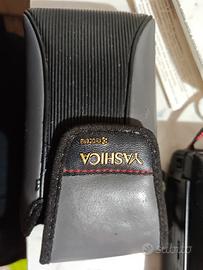 La Yashica AF‑J2 è una fotocamera compatta analogica a pellicola 35 mm prodotta da Kyocera alla fine degli anni ’80 (si indica di solito il periodo 1986–1990). � Caratteristiche principali Formato: 35 mm con sensibilità automatica tramite codice DX (ISO 100–1000). � Obiettivo: lente fissa da circa 32 mm con massima apertura f/3.5, generalmente considerata una lensa semplice ma piuttosto nitida per uno scatto “puntaytira”. � Autofocus e funzioni: autofocus a zone, esposizione automatica, flash integrato automatico, autoscatto 10 s, caricamento e riavvolgimento pellicola automatici. � Marca e appartenenza a Kyocera Yashica era un marchio acquisito da Kyocera negli anni ’80, quindi molte Yashica AF‑J2 riportano sulla ghiera “Kyocera” o “Made by Kyocera Japan”. � La AF‑J2 è spesso chiamata anche “Ninja Star II” dagli appassionati, perché faceva parte di una serie di compatti Kyocera/Yashica pensati per uso quotidiano e snap‑shooting. � Se mi dici cosa vuoi sapere (manuale, valutazione prezzo, compatibilità pellicole, usi creativi, ecc.), posso darti consigli più specifici su questa Yashica J2.