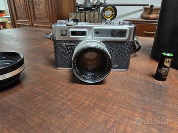 vendo fotocamera yashica vintage con custodia e diversi obiettivi con loro custodia.