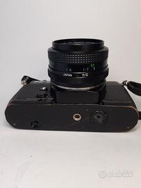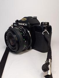 Yashica FX-3 con obiettivo 28mm MC 1:2,8 Vivitar con tracolla e custodia. Esposimetro e tempi funzionanti, usa pellicola da 35mm. Batterie comprese. Le foto sono parte della descrizione.