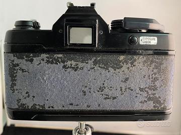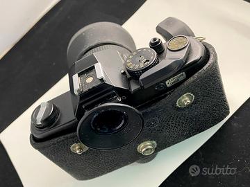 Vendo reflex analogica Yashica FX-3 completa del suo obiettivo Yashica Lens ML 50mm 1:2. Una macchina nota per la sua affidabilità meccanica e per l'attacco a baionetta Contax/Yashica, che permette di utilizzare anche lenti Carl Zeiss. L'obiettivo ML è la versione con trattamento multi-strato. In questo esemplare, l'esposimetro è testato e funzionante: i led nel mirino (visibile in foto) reagiscono correttamente alla luce. Meccanicamente, l'otturatore scatta su tutti i tempi e l'avanzamento è fluido. La dotazione include un grip ergonomico a vite (winder grip) che migliora la presa e replica l'attacco del treppiede inferiore, permettendo di montare la macchina sul cavalletto senza doverlo rimuovere. Come visibile dalle foto, il rivestimento in similpelle del corpo macchina è molto deteriorato sia davanti che dietro. Nota bene: non è frutto di cattivo uso o incuria. La macchina è sempre stata utilizzata protetta dalla parte inferiore della sua custodia (inclusa), bensì di un difetto congenito di tutte le FX-3, il cui materiale originale tende a sbriciolarsi col tempo. Online si trovano kit di "re-skin" a pochi euro per sostituire il rivestimento (cercare “kit re-skin Yashica FX-3”). È l'occasione per acquistare una macchina con meccanica ed elettronica sane, completa di accessori originali e di un'ottica superiore, e ripristinarla esteticamente. Dotazione (come da foto): •Corpo macchina Yashica FX-3. •Obiettivo Yashica ML 50mm 1:2 (lenti pulite, diaframma scattante). •Oculare rotondo di gomma. •Grip ergonomico a vite (winder grip) con replica attacco treppiede. •Paraluce in gomma. •Mezza custodia (half case) protettiva originale in pelle nera. •Due batterie LR44 nuove già inserite nell’apposito alloggiamento. La richiesta tiene conto principalmente del valore dell'ottica e della presenza di accessori utili. Il corpo macchina viene considerato quasi un omaggio a causa dell'estetica vissuta, pur essendo perfettamente funzionante in ogni sua parte.