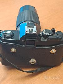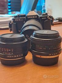Yashica Fx 3 - Super 2000 analogica con pochissimi scatti. Ottimo stato, però mancante di parte superiore copri macchina. Fornisco insieme 3 obiettivi: 50 Yashica, 75/200 Yashica e 28 Vivitar, tutti in perfette condizioni e senza righe.