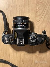 esteticamente senza difetti se non della nornale usura del tempo sulle parti delicate. Non garantisco il funzionamento. Custodia e obiettivo 50mm inclusi.