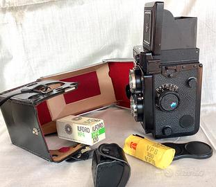Biottica 6x6 Yashica Mat 124G in ottime condizioni funzionali ed estetiche,ok scatto ed esposimetro,lenti perfette,schermo pulito,eccellente estetica vedi foto. Accessorio macro nr.1 in custodia,che consente di dimezzare la distanza di messa a fuoco (tipo Rolleinar) Bella borsa pronto con tracolla,copri obiettivo,batteria. Due rulli scaduti in omaggio. Grazie x evitare offertacce.