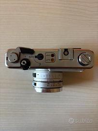 Fotocamera vintage anni ’70 analogica, perfettamente funzionante. In buone condizioni generali, con una leggera ammaccatura sulla parte sinistra dell’obiettivo (visibile in foto), che non ne compromette il funzionamento.
