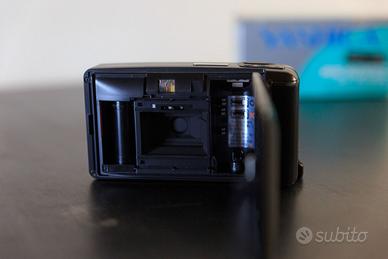 Macchina fotografica compatta analogica 35mm del 1995 nella sua confezione originale.