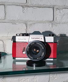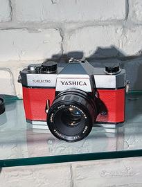 Reflex Yashica TL Electro in ottime condizioni, rivestimento nuovo in pelle rossa. Scocca argento perfetta. Leva di carica bloccata. Obiettivo Yashinon 50mm. 1.9, lenti pulite e ghiere fluide, con attacco M42
