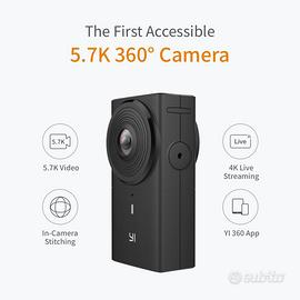 Videocamera/fotocamera per foto e video a 360gradi. Nuova acquisto per lavoro utilizzata 1 volta sola. 2 Sensori Sony. La fotocamera YI 360 VR è la prima, accessibile camera VR 360° a 5.7K con funzioni di stitching integrata in 4K/30fps e streaming dal vivo in 4K. YI 360 VR elimina i lunghi lavori di post-produzione necessari per effettuare la fusione panoramica di video e foto grazie alla funzione stitching integrata, che ti consente di catturare filmati a 360° incredibilmente vividi e poi condividerli senza sforzo sui tuoi social media. 4K Live Streaming C'è chi non vede l'ora di condividere i suoi momenti, e chi di vederli! Ecco perché abbiamo creato la funzione di Live Streaming in 4K: connetti semplicemente la app di accompagnamento ed in una manciata di secondi potrai trasmettere i tuoi momenti dal vivo direttamente su Facebook, YouTube a tanto altro. 360° reali Alcune fotocamere dicono di offrire una visuale a 360°, ma in realtà non é così. La fotocamera VR YI 360 ha una doppia-lente, ognuna da 220° con 8 strati di vetro asferico ed un'apertura focale di f/2.0. Unite ai due sensori di immagine Sony danno vita a delle immagini completamente vivide e nitide. Leggera e portatile Ritiro a Mano su Roma € Prezzo trattabile per realizzo immediato