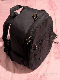 Zaino nero per reflex e accessori. Dispone di molte tasche ed è come nuovo. Misure: 30 x 15 x 37 cm Per info e foto contattatemi