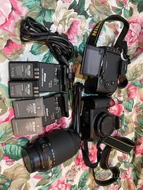 Nikon D5000 Nikon D5000 Entrambe usate poco in perfette condizioni, ipotetici scatti: 5000 Obiettivo manuale Samyang MIRROR LENS 500mm 1:6.3 DX Obiettivi Nikon DX AF S NIKKOR 55-200mm 1.4-5.6G ED VR con filtro UV (MMX) 52 Obiettivo Tamron manuale 70-210mm 5.6-32 Obiettivo Tamron manuale 28-70mm 3.5-22 con anello adattatore Nikon 2 batterie Nikon Lithium Ion 7.2V 1080mAh 7.8Wh 2 batterie Phottix per Nikon 7.4V 1050mAh 7.77Wh 1 parasole Nikon HB-37 1 parasole Nikon HB-57 1 parasole Tamron 58FH 1 filtro UV HAMA 58mm 1 filtro HAMA Sky 58mm Teleobiettivo Walimex 500/8,0 (Mai usato)