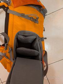 Lo zaino ha uno scomparto per il trasporto materiale fotografico estraibile e un'altra parte da usare per trasportare materiale per escursioni.