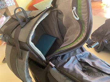 Mindshift-Rotation 180 34 L Usata 1 volta completo di accessori: tasca supplementare esterna abbigliamento, copertura impermeabile, vasca interna asportabile, borsa ventrale a rotazione 180°.