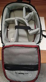 zaino fotografico compatto Hama modulabile, può contenere una reflex con obiettivo più altri 2 obiettivi e altri accessori nelle tasche laterali, anteriori interna ed esterna. alt. 28cm, largh. 23cm, prof. 15cm ottime condizioni