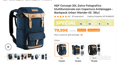 Zaino fotografico K&F Concept 20L