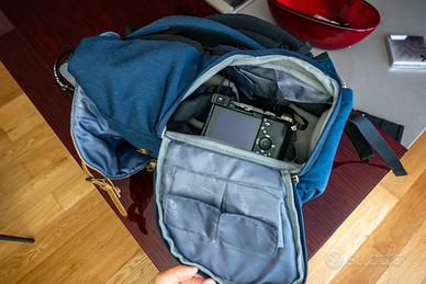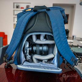 Vendo zaino fotografico K&F Concept (modello KF13.066) dal design vintage ed elegante, color blu navy con inserti in similpelle. Lo zaino è perfetto per chi cerca uno strumento professionale che non sembri la classica borsa da reflex. Caratteristiche principali: Doppio Scomparto: Parte superiore per oggetti personali (vestiti, libri, accessori) e parte inferiore imbottita con divisori modulabili per l’attrezzatura. Capienza: Ospita comodamente 1 corpo macchina + 2/3 obiettivi e accessori vari. Protezione Laptop: Tasca dedicata per computer fino a 15,6 pollici. Accesso Rapido: Apertura laterale per estrarre la fotocamera in pochi secondi senza togliere lo zaino. Sicurezza: Apertura dello scomparto principale sul retro (antifurto). Materiali: Poliestere 600D impermeabile e resistente agli strappi. Schienale traspirante per il massimo comfort. Extra: Attacco laterale per treppiede. Stato del prodotto: Lo zaino è in ottime condizioni, utilizzato pochissimo e senza segni di usura. Le cerniere e le fibbie magnetiche sono perfettamente funzionanti. Consegna: Disponibile per scambio a mano a Roma per verificare l'integrità dello zaino, o spedizione tracciata con TuttoSubito a carico dell'acquirente.