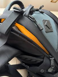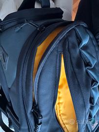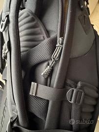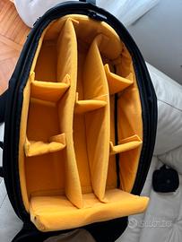 Allo zaino può essere agganciato un treppiedi (davanti o su un lato) grazie al portatreppiedi in dotazione.