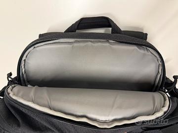 Zaino fotografico con scompartimento fotocamera o videocamera,obiettivi, computer portatile fino a 17”, allaccio treppiede, numerosi scompartimenti secondari, sacca impermeabilizzante. Ottime condizioni estetiche