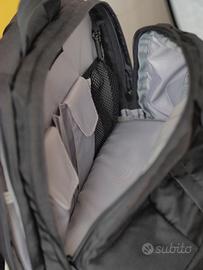 Come nuovo, mai usato, con scomparti a velcro, cerniere protette antipioggia. Apertura laterale, scomparto per il pc, molto robusto.