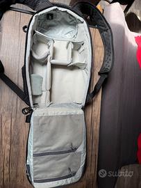 Zaino fotografico modello ProTactic BP 250 AW, colore nero. Struttura rigida con accessi multipli, divisori interni modulari per attrezzatura fotografica, tasche con chiusura a zip e copertura antipioggia integrata (All Weather). Spallacci imbottiti e schienale ergonomico. Dimensioni esterne 30 x 22 x 44 cm (larghezza × profondità × altezza) Usato, presenta una scucitura nella zona degli spallacci. Per il resto in condizioni funzionali, con normali segni d’uso.