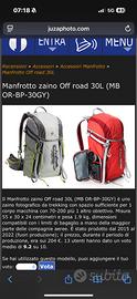 Zaino fotografico e da trekking Manfrotto Off Road grigio, in condizioni molto buone. Solo scambio a mano, non spedisco
