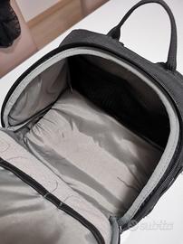 ha lo spazio per il materiale fotografico in basso con 2 accessi laterali e nella parte superiore uno spazio più aperto e libero per poter mettere magari vestiti o cibo