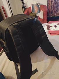 REGALO come nuovo zaino fotografico nero in materiale idrorepellente e interno a scomparti per collocazione obbiettivi e corpo macchina.