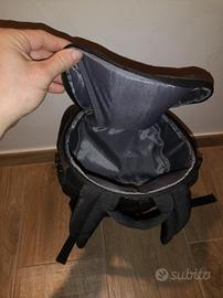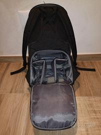 Vendo zaino fotografico, in buone condizioni, piccola scucitura vicino all maniglia come visibile dalle foto. Apertura tasca di sicurezza, su schienale.