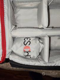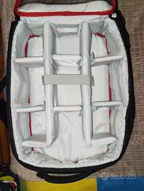 Zaino fotografico pari al nuovo, con scompartimenti intercambiabili a proprio piacimento. Protegge perfettamente l'attrezzatura fotografica e a buone dimensioni. Di lato allo zaino si trova l'attacco per il tre piedi. E al interno per farvi un esempio ci sta RF 200-800 con corpo macchina attaccato r7 / r6 ecc.. più un altro obbiettivo e un altro corpo macchina e accessori di vario tipo, veramente un ottimo zaino. impermeabile