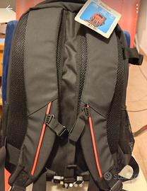 zaino fotografico nuovo con etichetta, scomparti regolabili, copri pioggia