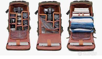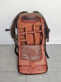 Zaino fotografico molto capiente, ben imbottito ed ermetico, oltre che esteticamente elegante, capace di accogliere all'interno più corpi macchina, obiettivi e un pc portatile di grandi dimensioni.