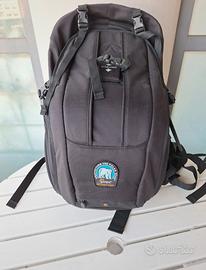 Zaino professionale di alta qualità progettato con due distinti scomparti, uno per trasportare una reflex digitale professionale con obiettivi/accessori (con imbottiture amovibili e regolabili) e l’altro per abbigliamento e/o oggetti personali, oltre ad una grande tasca esterna.