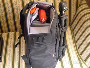 Seminuovo,inusato, zaino nero con tracolla monospalla della Manfrotto per attrezzature fotografiche.