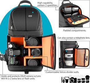 Borsa a tracolla Neewer, professionale per fotocamera, impermeabile, antiurto e antistrappo, con partizione protettiva per fotocamere DSLR e mirrorless (interno arancione).