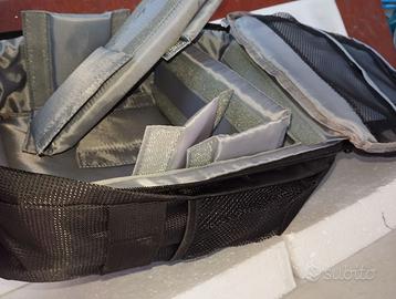 Zaino per macchine fotografiche e accessori con scomparti interni componibili. Colore nero, dimensioni 33 x 26 x 12. NUOVO, MAI USATO.