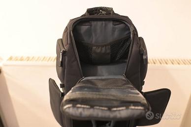 In buone condizioni generali, perfettamente integro e pulito, utilizzato sempre con cura. Sistema Triple Access: Permette di accedere all'attrezzatura in tre modi (frontale, lato destro o lato sinistro) senza dover togliere completamente lo zaino. Capacità Elevata: Ospita tranquillamente una reflex/mirrorless professionale con battery grip (tipo Nikon Z6II/D850) e obiettivo montato (esempio 70-200mm f/2.8), oltre a 3-4 obiettivi extra e flash. Vano Laptop: Scomparto imbottito dedicato che può ospitare notebook fino a 17.3 pollici. Vano Superiore: Ampio spazio per oggetti personali, giacca o accessori, possibilità di unire i due vani per posizionare lunghi teleobiettivi. Porta Treppiede: Sistema QuickClip per il trasporto esterno del cavalletto. Protezione: Include la copertura antipioggia (Rain Cover) originale. Qualche normale segno d'usura estetico dovuto all'utilizzo, ma la struttura è solida e le imbottiture interne sono ancora perfette e riposizionabili. Disponibile per consegna a mano a Roma per visionare il prodotto. Possibilità di spedizione a carico dell'acquirente. #zaino