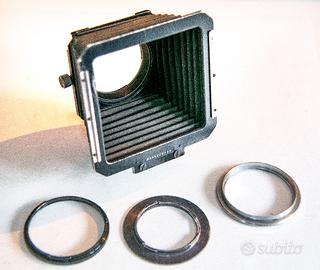 Obiettivo Zeiss Distagon CF 3,5/60 T* con paraluce originale + paraluce professionale estensibile completo di n. 4 anelli adattatori.
