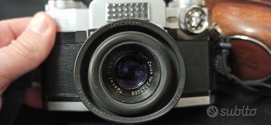 Storica macchina fotografica analogica Zeiss, costruita fra il 1959 e il 1963 (fonte Wikipedia), ottica fissa 50mm f/2.8, completa di custodia originale. Pezzo da collezione.