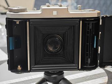 zeiss ikon nettar 518/16 - Novar-anastigmat 4,5 f=75 mm. Funzionante in ogni sua parte, l'ho provata l'ultima volta circa due anni fa, non ho riscontrato problemi meccanici né infiltrazioni di luce. Tempi sincronizzati.